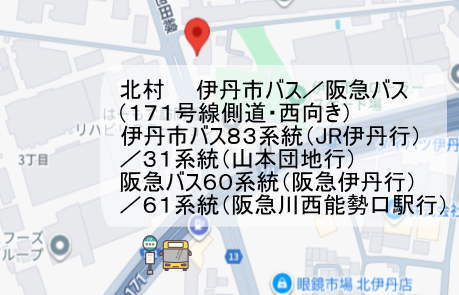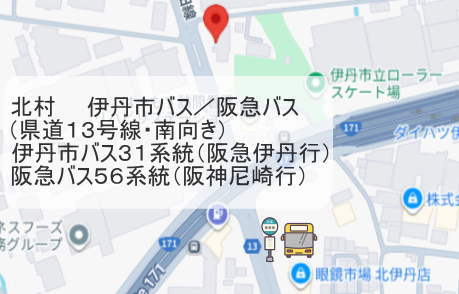 ※伊丹市バス及び阪急バスの停車駅・時刻については、各バス会社ホームページをご覧下さい。伊丹市バスhttps://itamicity-bus.jp/阪急バスhttps://www.hankyubus.co.jp/rosen/route/2121_itami.html