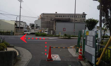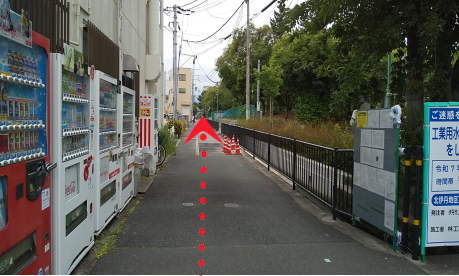 自販機横の歩道を県道13号まで約500m直進